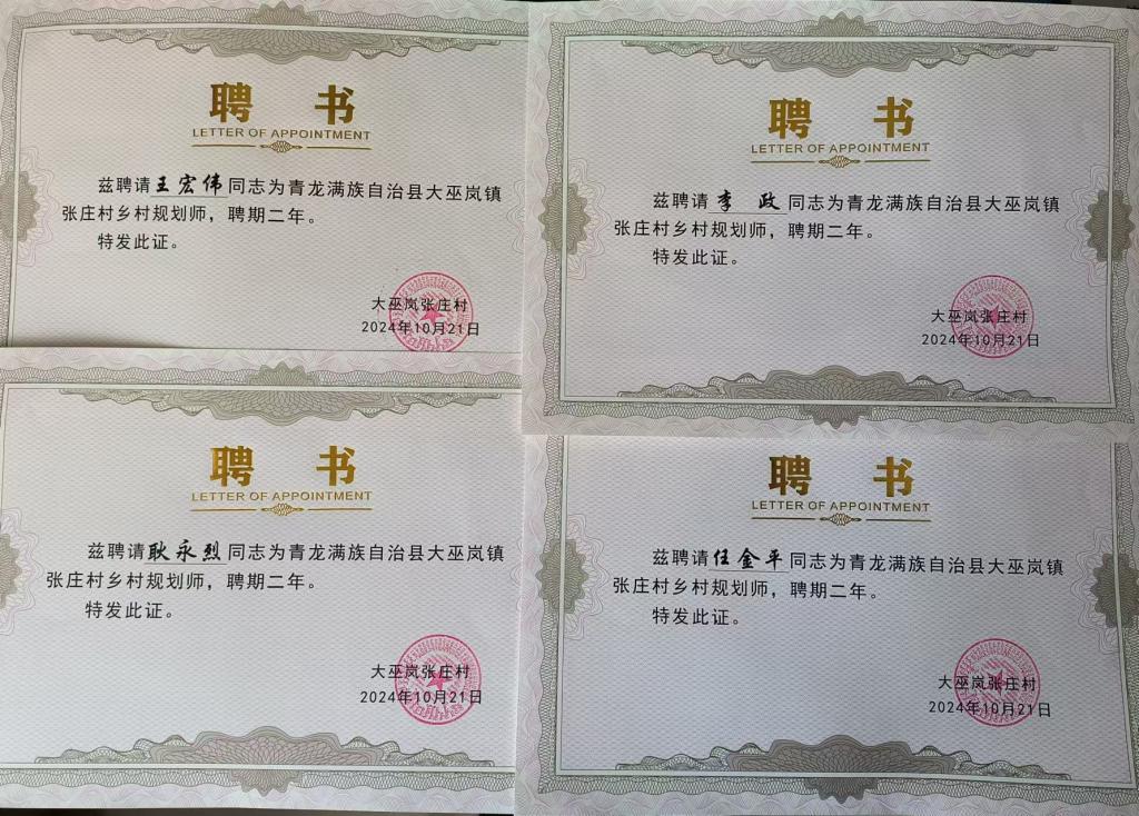 同时,在太阳集团tyc539前期入村开展乡村规划建设帮扶的基础上,张庄村村委向公司李政经理等4人颁发了乡村规划师的聘书,聘期为二年。太阳集团tyc539将继续发挥专业优势,积极帮扶张庄村推进产业发展和美丽乡村建设。(编辑:鲁艳丽,审核:刘志飞)
