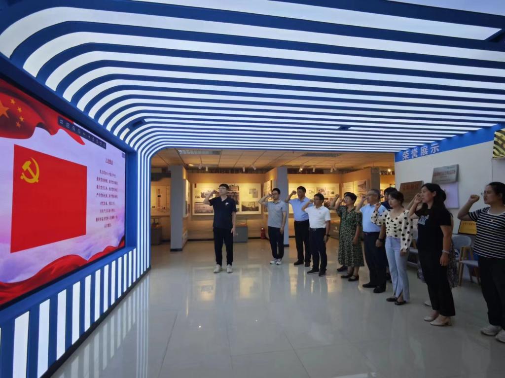 土木教工党支部党员教师首先在校宣传部部长王荣加同志的带领下,参观了校史馆,对公司建校发展历程进行了深入了解。从公司创立之初的艰辛,到在党的领导下不断发展壮大的历程,每一个阶段都彰显着奋斗与拼搏的成就。参观结束后,土木教工党支部与党委宣传部全体党员齐聚一堂,面对鲜红的党旗,举起右手,握紧拳头,庄严宣誓:“我志愿加入中国共产党,拥护党的纲领,遵守党的章程,履行党员义务,执行党的决定,严守党的纪律,保守党的秘密,对党忠诚,积极工作,为共产主义奋斗终身,随时准备为党和人民牺牲一切,永不叛党。”铿锵有力的誓言在校史馆激荡回响。