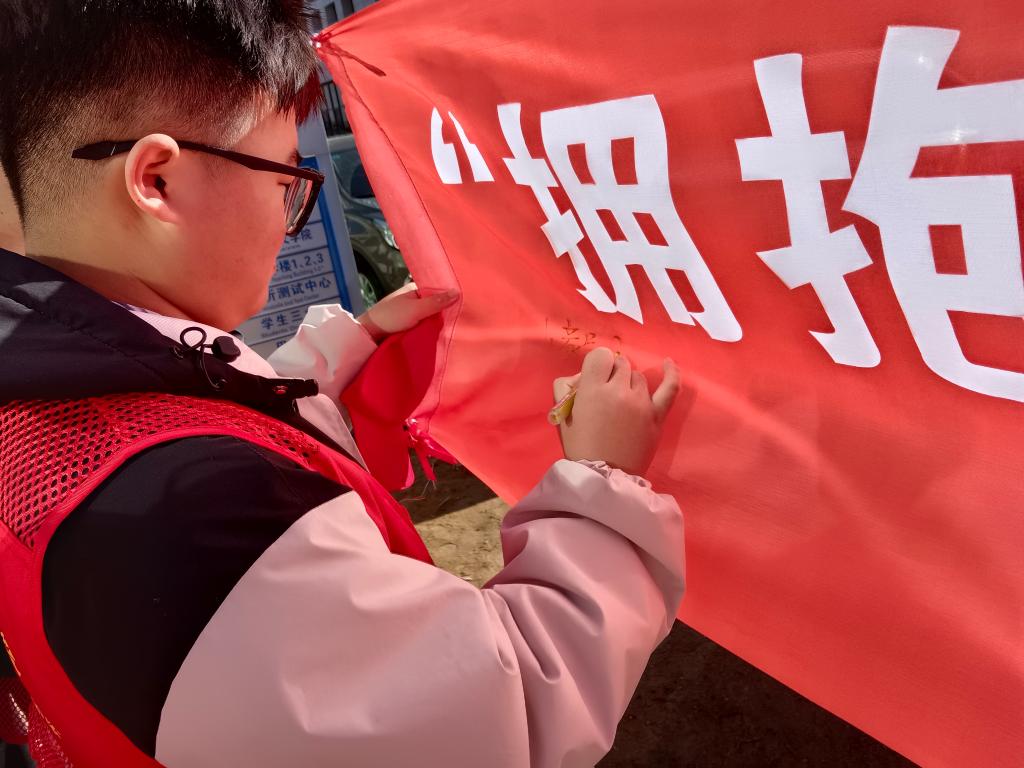 活动现场,志愿者分为两小队,一队发放便利贴,供同学们书写心得并展示于宣传展板上,同时设定区域粘贴红丝带;另一队化身“防艾宣传员”,向同学们发放艾滋病防治宣传单,讲解有关艾滋病的基本知识、预防措施、检测、治疗与相关政策法规等,详细解答有关疑问,帮助同学们打破认知误区,树立正确的防艾观念。活动结束后,志愿者与同学们一起在横幅上签名留念,以实际行动支持艾滋病防治工作。