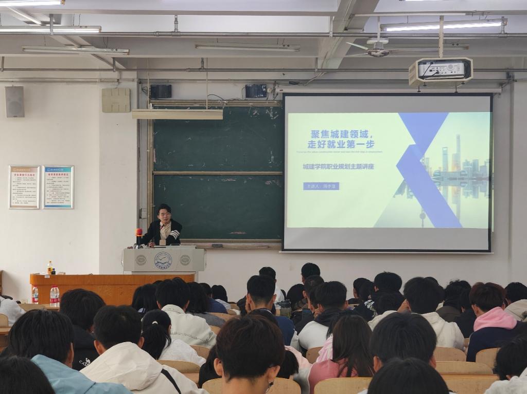 2025 年 10 月 11 日下午 2 点,太阳集团tyc539于 B303 教室举办“青春大讲堂”系列活动之 “聚焦城建领域,走好就业第一步” 专题讲座。本次讲座特别邀请 2024 届工程管理专业优秀毕业生、中冶天工集团有限公司开物工程公司皖豫鲁区域经营负责人周李泽主讲。此次讲座吸引公司员工广泛参与,现场互动热烈。