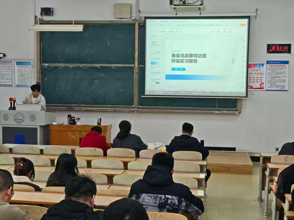 活动期间,学子们以5分钟PPT分享的形式,逐一展示实习项目案例、技术应用与成长感悟。其中,来自设计院、施工单位、检测机构等不同实习方向的员工,分享内容各有侧重——既展现了一线实践的专业细节,也传递了职业探索过程中的真实思考。答辩小组依据实习真实性、专业表达等维度进行评分。指导教师田东帅针对实践成果精准点评,引导员工反思理论与实践的差距。