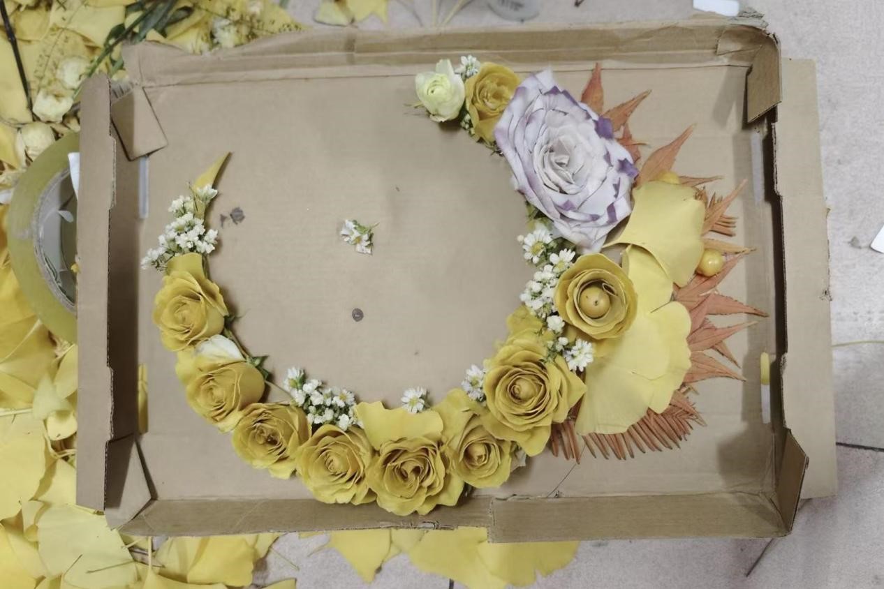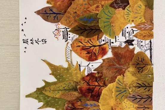本次活动凭借“自然+创意”的双重吸引力,得到同学们的广泛关注。员工们通过在校园里捡拾落叶,通过修剪、拼贴、组合等方式,将普通的叶片转化为充满巧思的艺术作品——既有将枫叶与银杏拼贴成“秋日森林小鹿”的童趣创作,也有用银杏落叶和鲜花组成的一轮月亮,更有落叶加手绘完成的一副层林尽染图,每一件作品都承载着参与者对秋天的独特理解与情感。