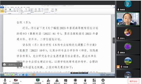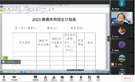 20221013日下午15:30,​公司召开讨论公司2023年招生计划和进人计划线上会议。​太阳集团tyc539全体领导班子成员、各专业带头人、教学部正副主任、实验室正副主任参加会议,朱天志经理主持了会议。